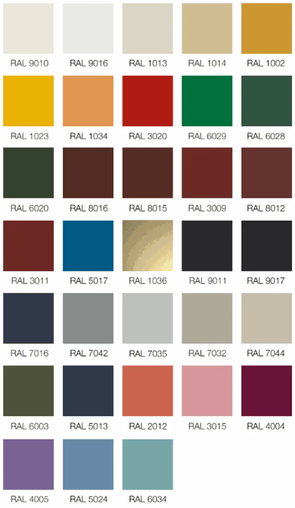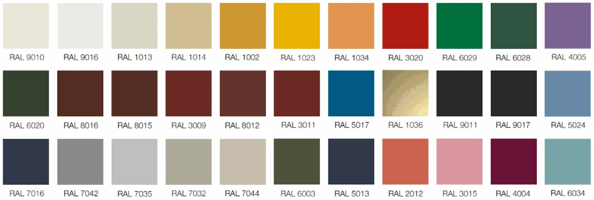 - La couleur par défaut est le noir, mais en option vous pouvez appliquer un laquage. Les couleurs RAL disponibles sont les suivantes :