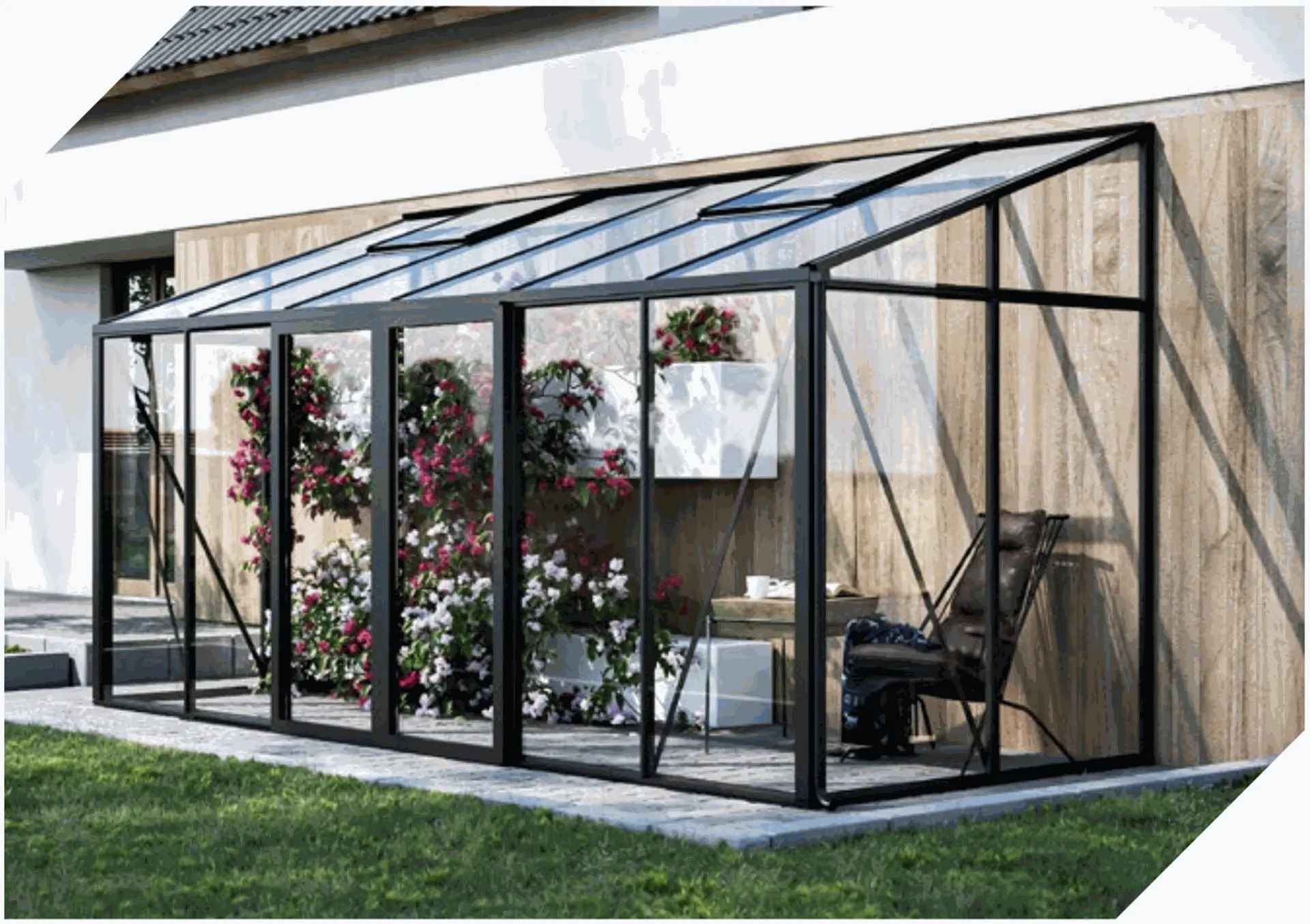 Alliant design exceptionnel et innovation, cette version adossée de la serre Elegance Premium est la plus belle et moderne du marché. Conçue pour se fondre harmonieusement à votre maison, elle offre un espace pratique et esthétique à un prix défiant toute concurrence, sans aucun compromis sur la qualité ni la robustesse.